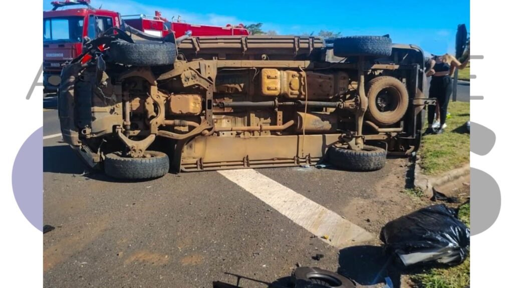 Com o impacto, a S10 tombou no dispositivo de acesso, enquanto o Ford Ka ficou imobilizado na faixa de rolamento, entre os sentidos sul e norte da rodovia.