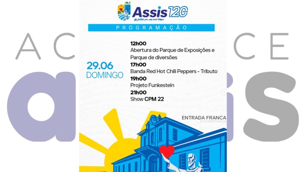 A cidade de Assis se prepara para viver um fim de semana especial com a grande festa de 120 anos de história, que acontecerá entre os dias 29 de junho (domingo) e 1º de julho (terça-feira) no Parque de Exposições Jorge Alves de Oliveira.