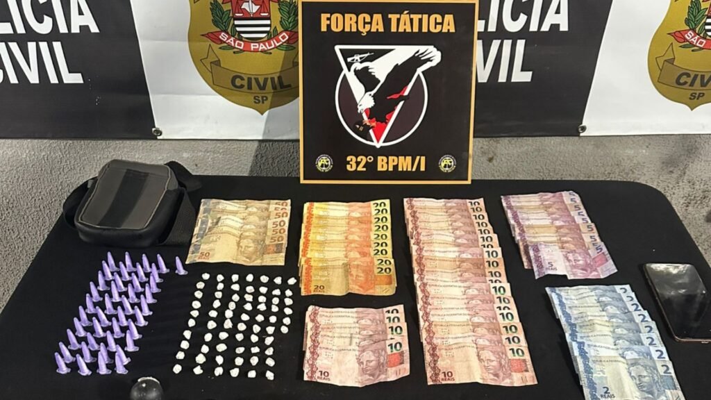 Durante a ação policial, a suspeita foi flagrada com um “kit” variado de ilícitos. Segundo o registro, ela portava diversas porções de drogas já fracionadas e prontas para a venda, além de uma quantia considerável em dinheiro vivo e aparelhos celulares.