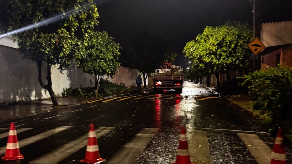 Vias interditadas, árvores caídas e cenas de destruição marcaram a noite deste sábado (22) em Assis.