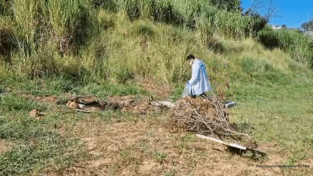 A descoberta foi feita por moradores da área, que acionaram a polícia para atender à ocorrência.