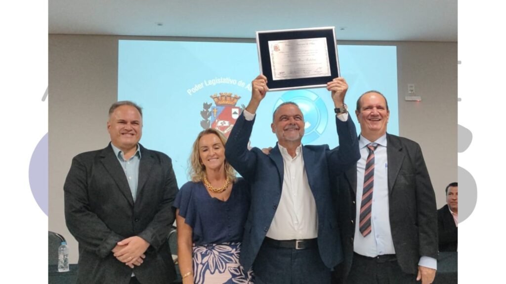 ASSIS – O deputado estadual Ricardo Madalena (PL) recebeu, na noite desta quinta-feira (11), o título de Cidadão Assisense. A cerimônia solene foi realizada no Auditório da FEMA (Fundação Educacional do Município de Assis) e reuniu mais de 300 pessoas, entre lideranças políticas, representantes de entidades e moradores.
