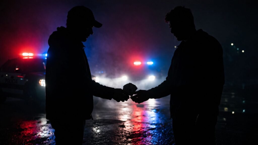 Eles foram abordados e submetidos a uma busca pessoal. Embora não estivessem carregando nada ilícito no momento (como armas ou drogas), os policiais encontraram diversos cartões de visita com as inscrições suspeitas: “Dinheiro na Hora” e “Para Comerciantes”.