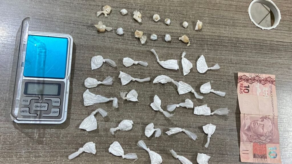 Atitude Suspeita Ao notar a aproximação da viatura, o homem teve uma reação imediata: arremessou um invólucro branco ao solo e acelerou o passo, tentando se afastar. A atitude chamou a atenção dos policiais, que realizaram a abordagem. Na busca pessoal, foi encontrada no bolso do suspeito uma balança de precisão e a quantia de R$ 10,00.