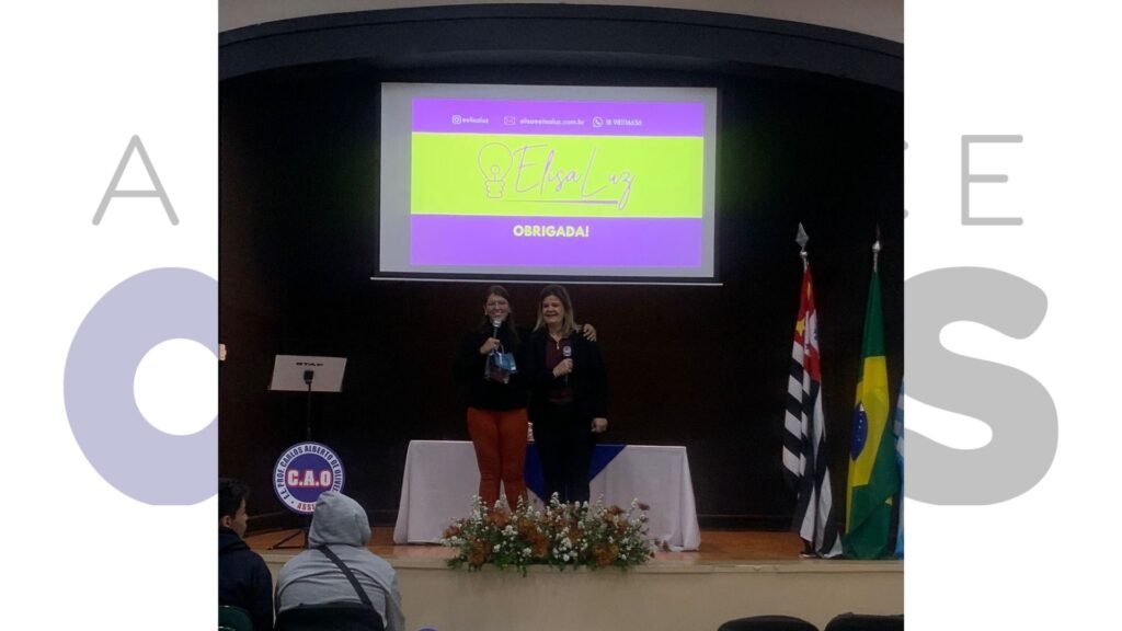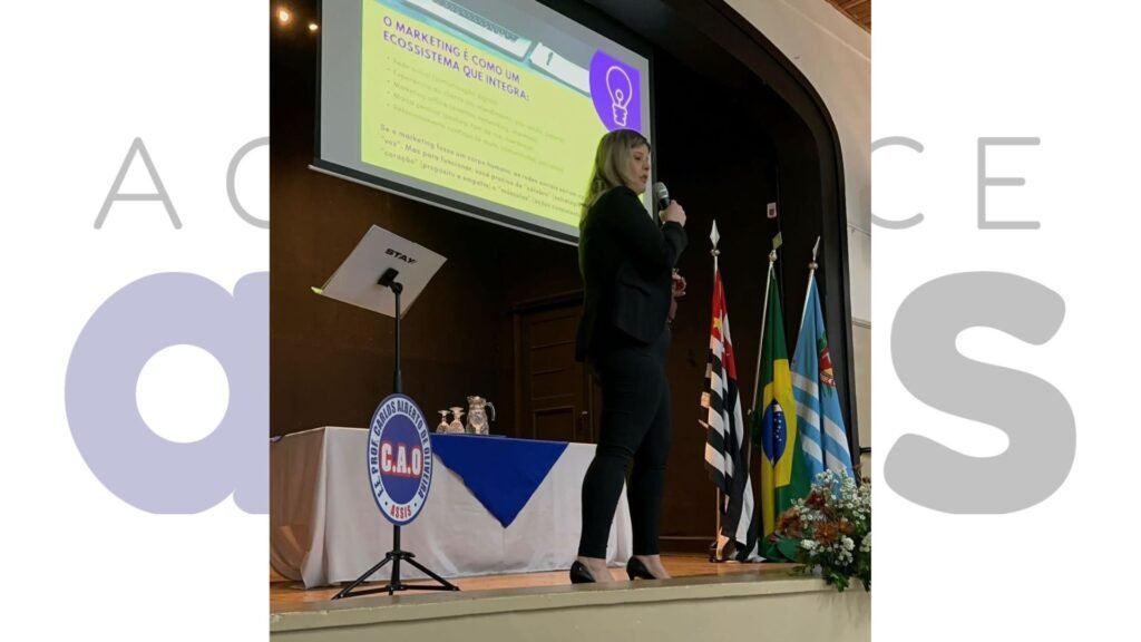 Na manhã da quinta-feira (14), os alunos puderam participar da palestra “Marketing além do post: como sua comunicação e postura estão te moldando?”, conduzida pela especialista em marketing Elisa Luz.
