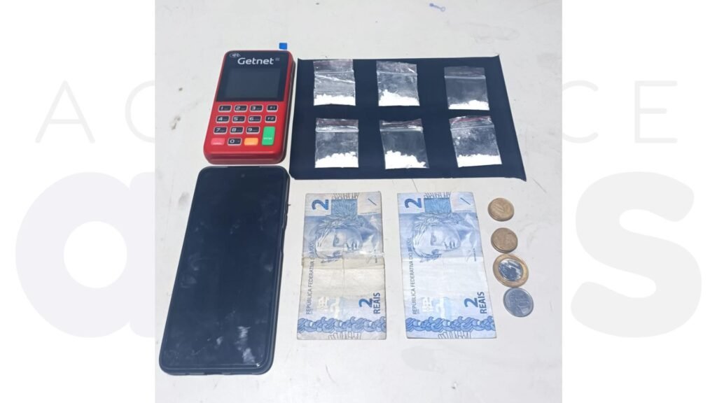 Além disso, um aparelho celular, uma máquina de cartão e R$5,50 em dinheiro também foram apreendidos.