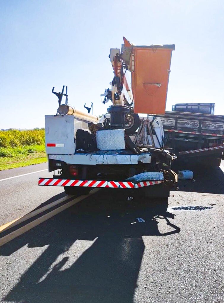 Após o impacto, o Cargo foi imobilizado no canteiro lateral da rodovia, enquanto os outros caminhões permaneceram bloqueando a faixa de rolamento.