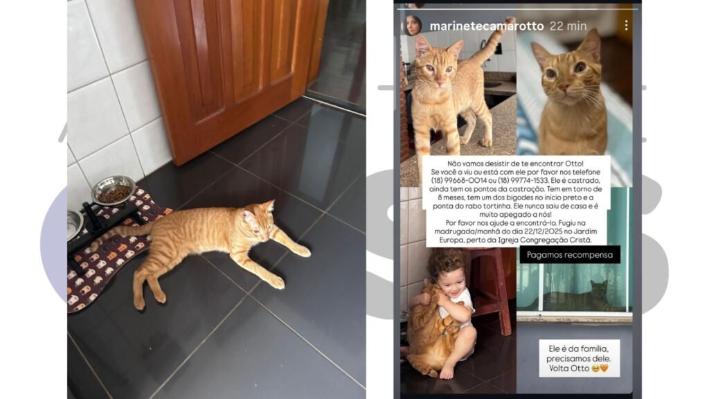 Para quem mora ou passa pela região do Jardim Europa (próximo à Igreja Congregação Cristã), a família pede atenção às características específicas de Otto para diferenciá-lo de outros gatos amarelos: