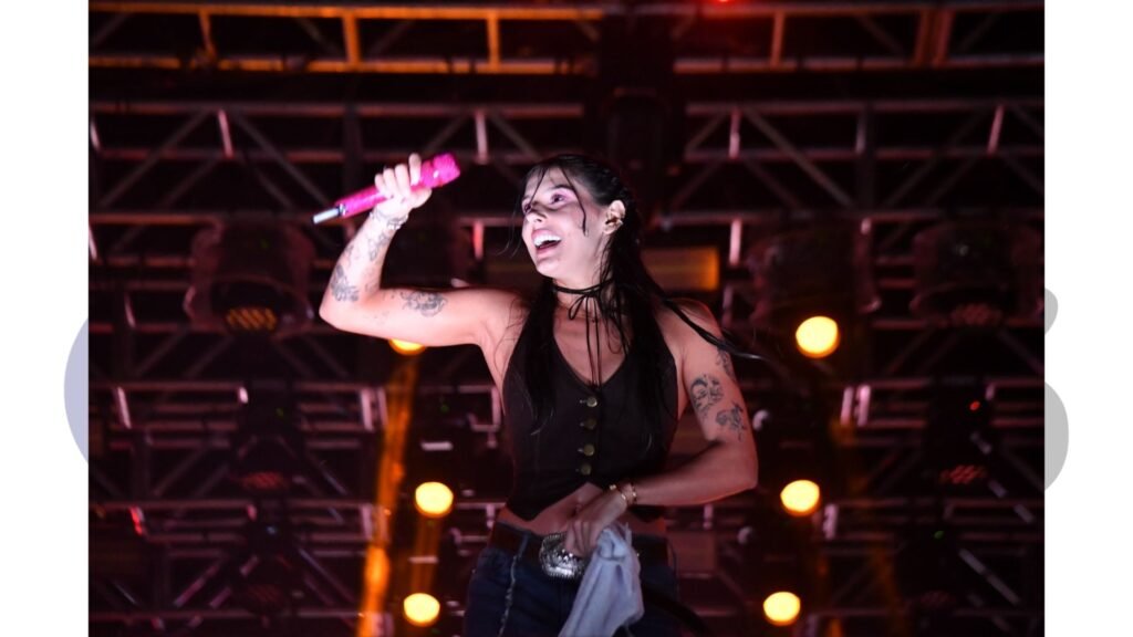 No palco principal, a “Boiadeira” Ana Castela foi a responsável por fechar a programação musical. Mesmo sob chuva forte, a artista entregou uma performance excepcional, interagindo com a plateia e mantendo a energia do público lá no alto até o final do show.
