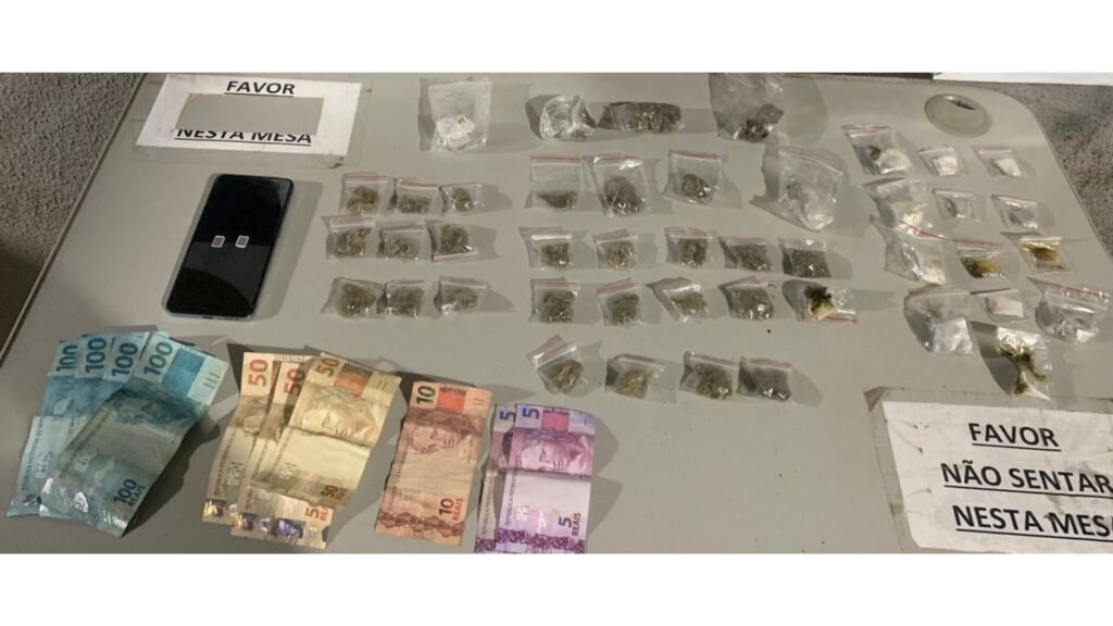 • R$ 570,00 em dinheiro e um aparelho celular, possivelmente utilizado para negociar as vendas.