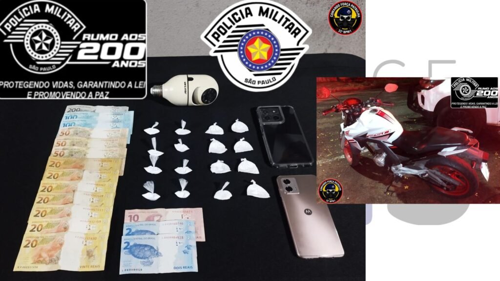 A ocorrência teve início por volta das 22h20. A Polícia Militar recebeu informações que o suspeito utilizava sua motocicleta para buscar drogas que armazenava em uma casa e abastecer um ponto de venda conhecido — um estabelecimento comercial.