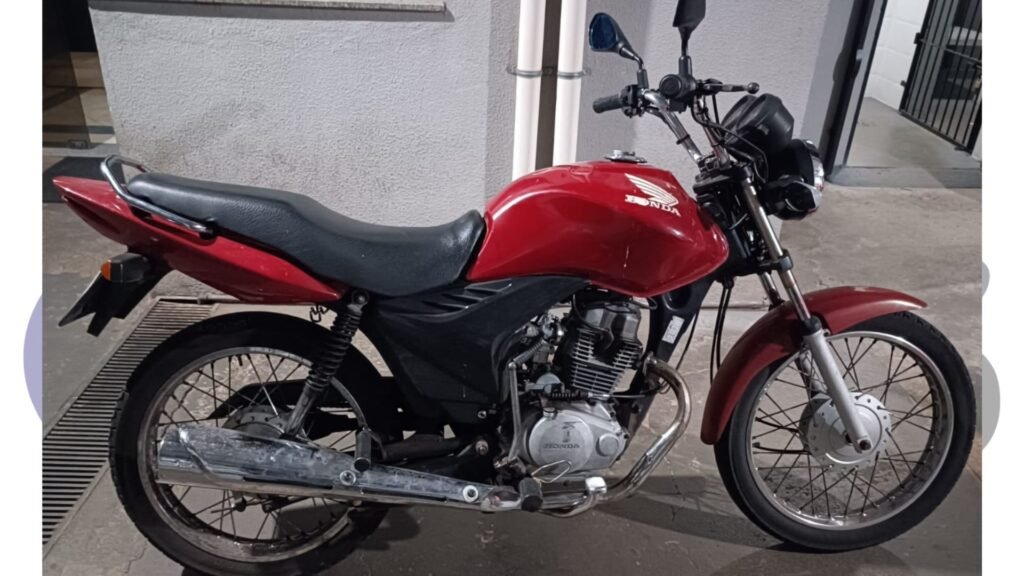 Ao entregar o objeto, o indivíduo saiu em disparada com a motocicleta Honda/CG 125 vermelha, mas foi abordado na Avenida Rui Barbosa.
