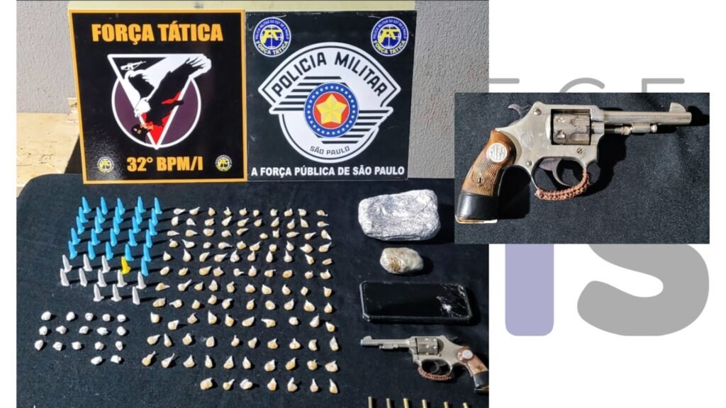 Durante patrulhamento na noite de quinta-feira (31 de julho), a equipe da Força Tática do 32º Batalhão da Polícia Militar do Interior (32º BPM/I) prendeu um homem por porte ilegal de arma de fogo e tráfico de drogas, no município de Palmital (SP).