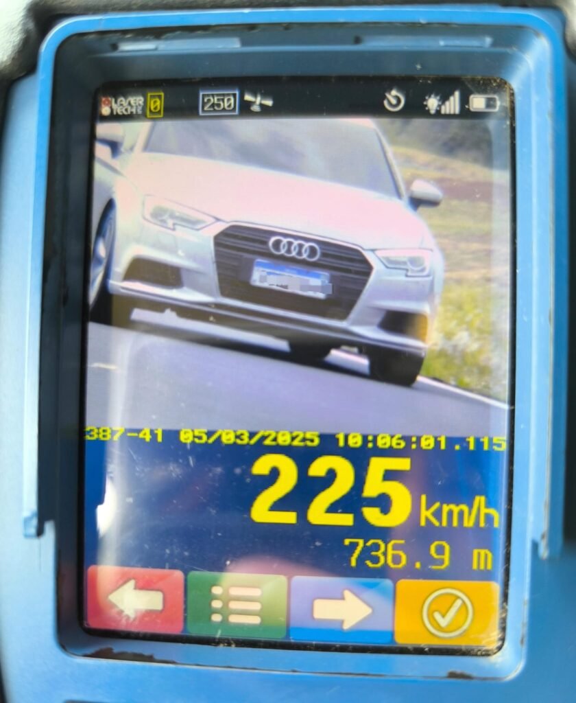 Na manhã de quarta-feira de cinzas (5 de março de 2025), a Polícia Militar Rodoviária registrou uma flagrante irresponsabilidade ao volante na Rodovia Castello Branco (SP-280), em Santa Cruz do Rio Pardo. Durante um controle de velocidade no Km 312, os policiais flagraram um automóvel circulando a impressionantes 225 km/h – mais de duas vezes o limite permitido na via, que é de 120 km/h.