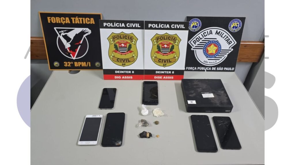 Além do cumprimento das ordens judiciais de prisão temporária, a operação resultou em flagrante delito. Durante as buscas nas residências de R.A.S. e N.M.O.R., os policiais localizaram porções de maconha, cocaína e crack, já embaladas de forma característica para a venda, além de aparelhos celulares.
