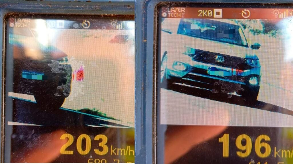 Um dos pontos de fiscalização, localizado na Rodovia Castelo Branco (SP-280), em Santa Cruz do Rio Pardo/SP, registrou 243 veículos acima da velocidade permitida, com flagrantes impressionantes de 203 km/h e 196 km/h.