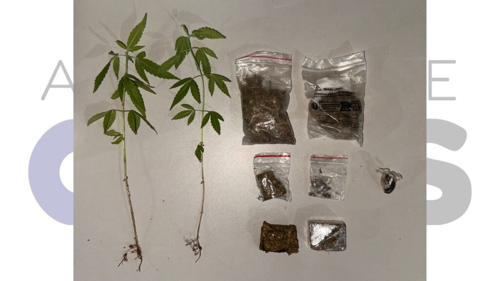 A “Plantação” na Calçada Enquanto averiguavam o perímetro, a equipe notou algo inusitado: um pé de maconha (Cannabis sativa) estava sendo cultivado junto ao tronco de uma árvore, defronte a casa. Questionado, o homem assumiu ser o dono da planta e confessou que havia mais drogas dentro do imóvel, em cima de um balcão.