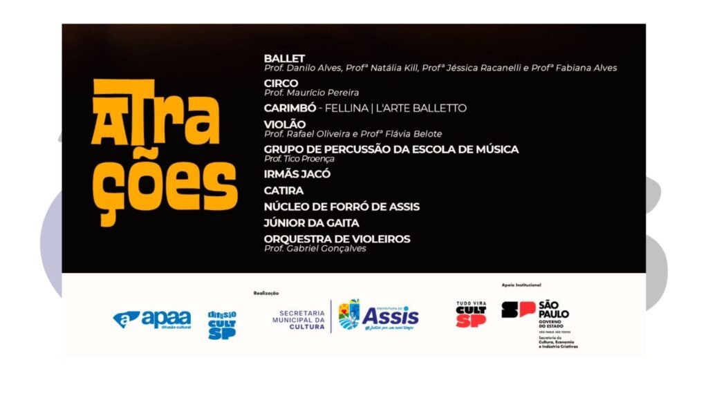 A Prefeitura Municipal de Assis, por meio da Secretaria de Cultura, convida toda a população para participar da Festa do Folclore, uma celebração que resgata as tradições, histórias e saberes transmitidos de geração em geração.