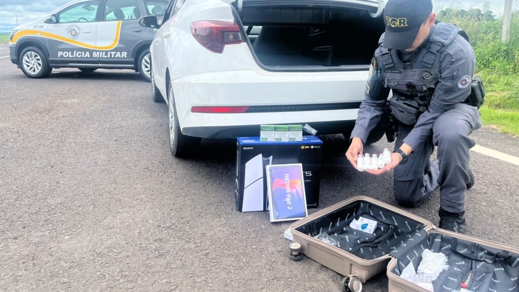 Rota do contrabando: Policiamento Rodoviário intercepta anabolizantes e eletrônicos ilegais na Rodovia Miguel Jubran