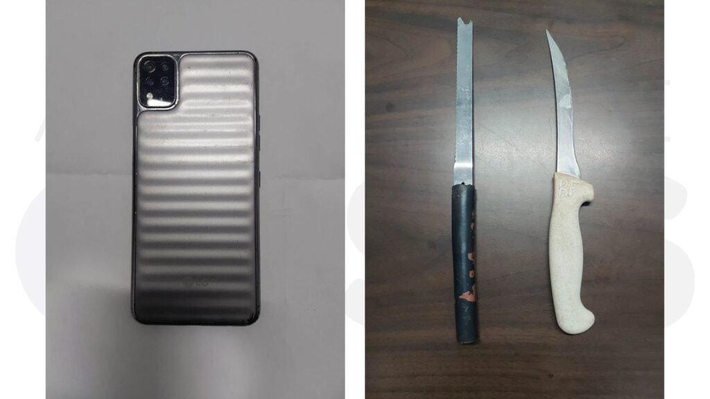 As facas utilizadas no crime também foram apreendidas e o celular devolvido à vítima.