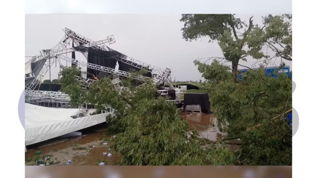 O evento era promovido pela comissão de formatura da Faculdade de Medicina. A tempestade atingiu o local por volta das 2h, destruindo o hangar onde ocorria a festa.