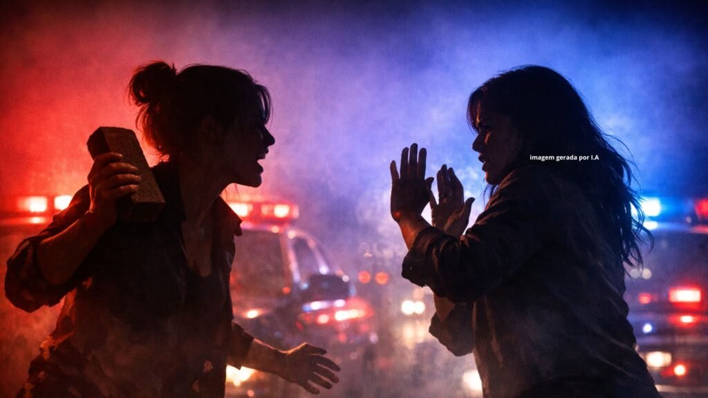 A Polícia Militar foi acionada por volta das 19h para atender a um chamado na Rua Roberto Henrique da Silva. No local, a vítima relatou aos policiais que havia sido agredida fisicamente pela autora, que chegou a arremessar um tijolo em suas costas.